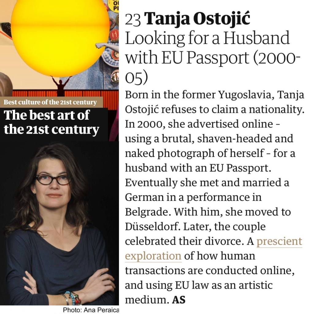 Looking for a Husband with EU Passport installation is a part of the contemporary art collection of the Moderna Galerija MG+MSUM Ljubljana, Slovenia. This, theoretically highly referential and one of the seminal art projects by T. Ostojić, has been also included it the list of „The best art of the 21st century“ by the british Guardian.