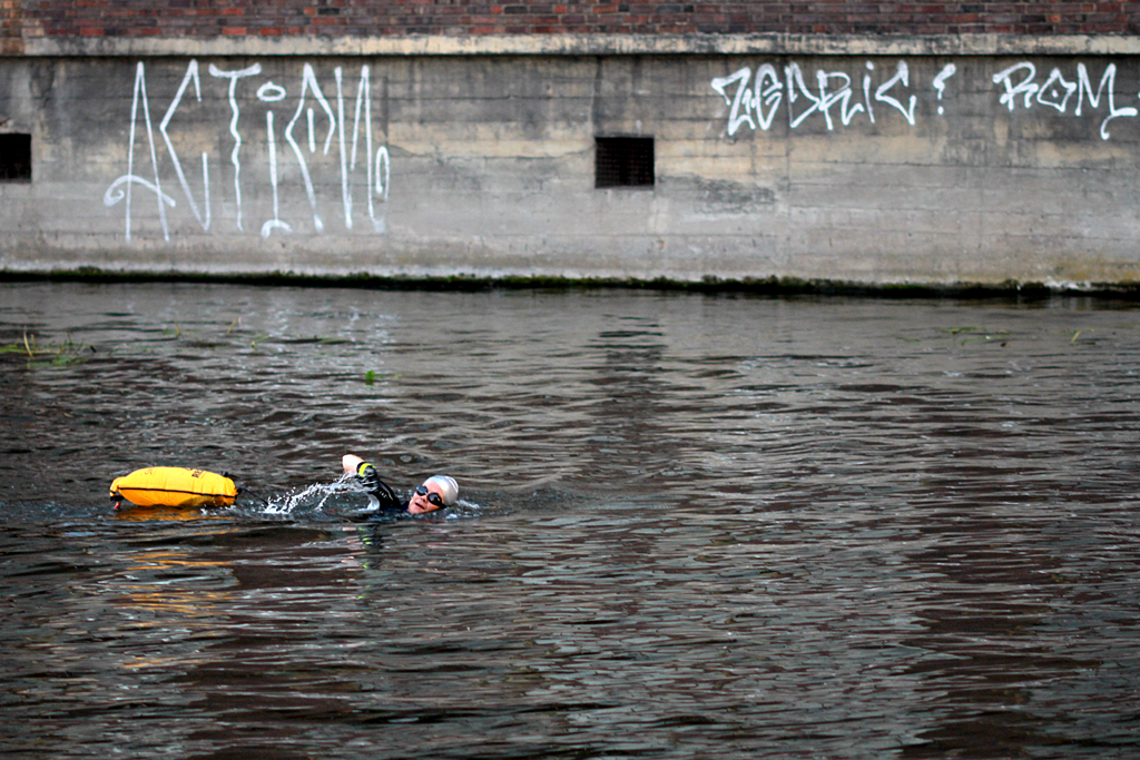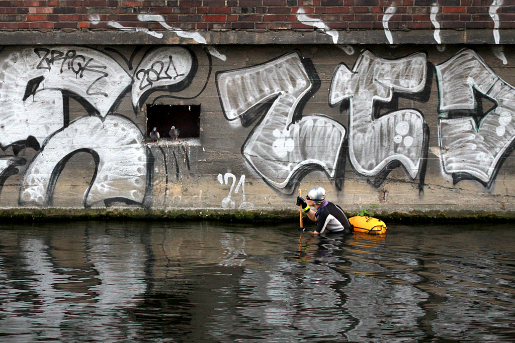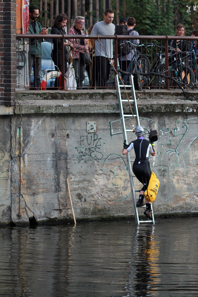 ‘The Building has a Shape of The River’ is a site-responsive performative research in which I commemorated the historical Berlin Wall escape route, by exploring western facade of Am Flutgraben eV building, digging out of mud and water a variety of stuff, including bricks (that have been laying in the canal since the Fall of the Wall, Nov 9, 1989), and swam over the Spree River flood trench.